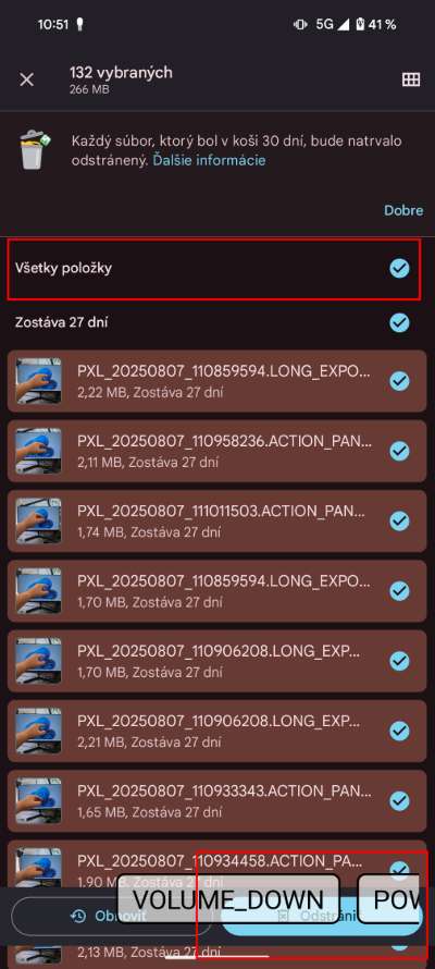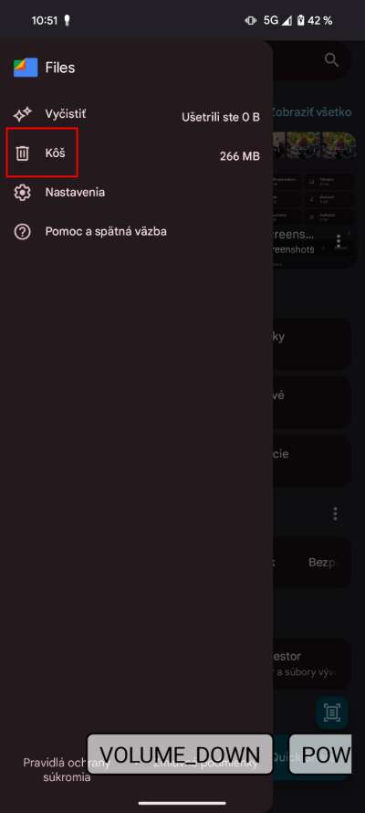 Čistenie v tejto záložke súbory len presunie do Koša, výnimkou sú dočasné dáta aplikácií a odinštalované aplikácie, tie miznú hneď. Kôš sa síce po 30 dňoch vyprázdni automaticky, ale ak chceš okamžite vidieť, ako ti pribudlo miesto, choď do menu, otvor Kôš a stlač, kde označ všetky súbory a potvrď ich odstránenie. Dve potvrdenia a je to preč. Ak tam objavíš niečo, čo ešte potrebuješ, stačí kliknúť na „Obnoviť“.