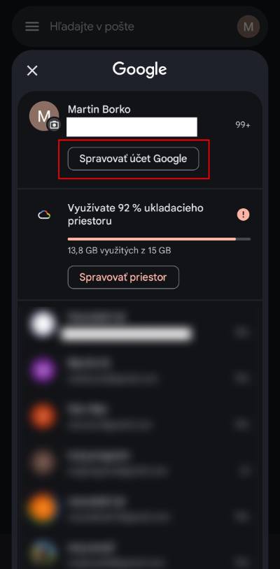 - Teraz klikni na možnosť Spravovať účet Google.