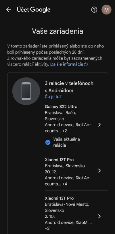 - Následne uvidíš zoznam zariadení (telefónov, počítačov,..), cez ktoré si prihlásený k tvojmu účtu. Ak medzi nimi nájdeš také, ktoré nespoznávaš, klikni na neho a odhlás sa. Odporúčame ti následne zmeniť si heslo.