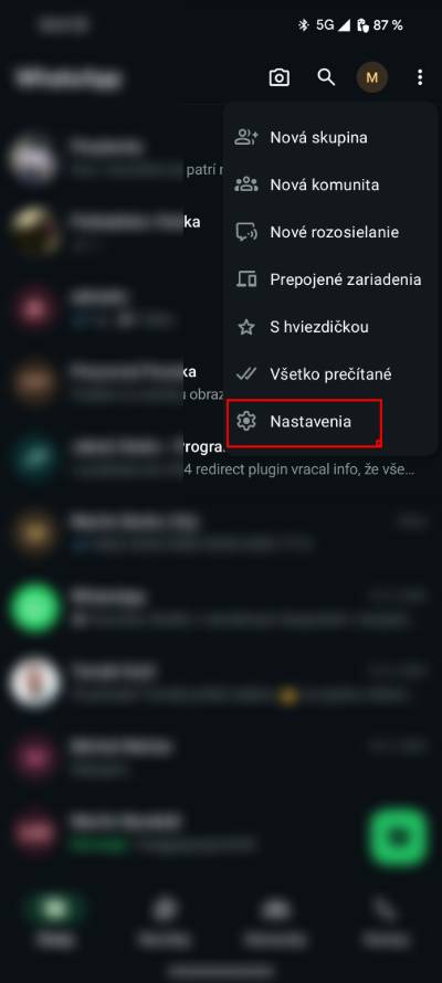 - Otvor si WhatsApp a klikni na tri zvislé bodky v pravom hornom rohu.