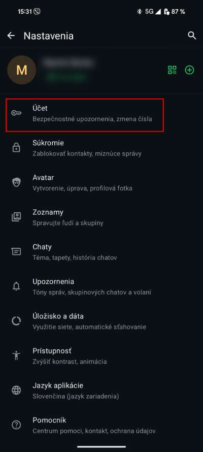 - Teraz otvor Nastavenia aplikácie a klikni na možnosť Účet.