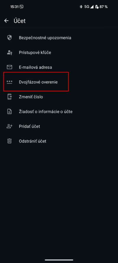 - Následne zvoľ možnosť Dvojfázové overenie a aktivuj ho.
