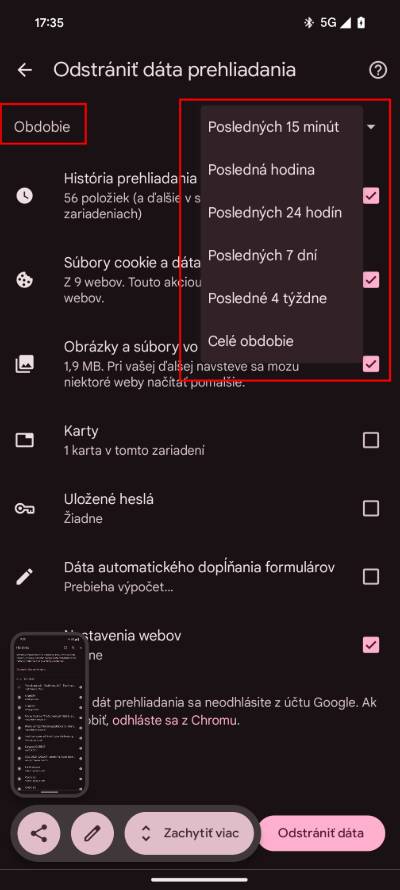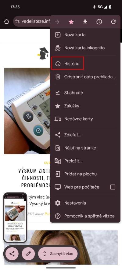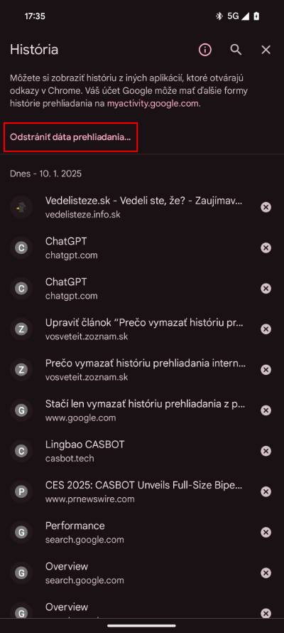 Na smartfóne postupuj podobne. Klikne na tri bodky v pravom rohu, vyber možnosť “História” a potom “Odstrániť históriu“. Následne zvoľ obdobie, za aké chceš odstrániť históriu.