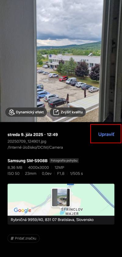 V aplikácii Galéria polohu odstrániš tak, že si otvoríš fotografiu a potiahneš prstom smerom hore zdola. Potom klikni na možnosť Upraviť a následne odstráň polohu. Fotku môžeš potom zdieľať.