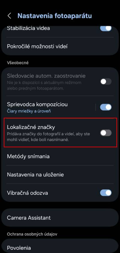 Môžeš to ale aj automatizovať a nastaviť si, aby sa do fotografií neukladali informácie o polohe. V prípade aplikácie Fotoaparát otvor nastavenia a na karte Všeobecné vypni lokalizačné služby.