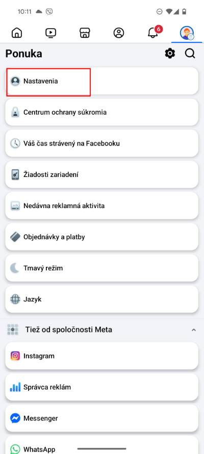 - V ďalšom kroku klikni na možnosť Nastavenia.
