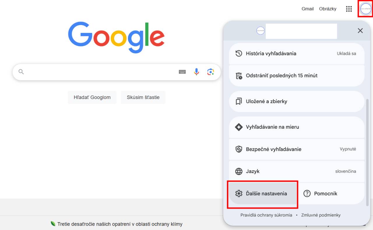 - Otvor si v prvom kroku Google a klikni na svoj profilový obrázok.