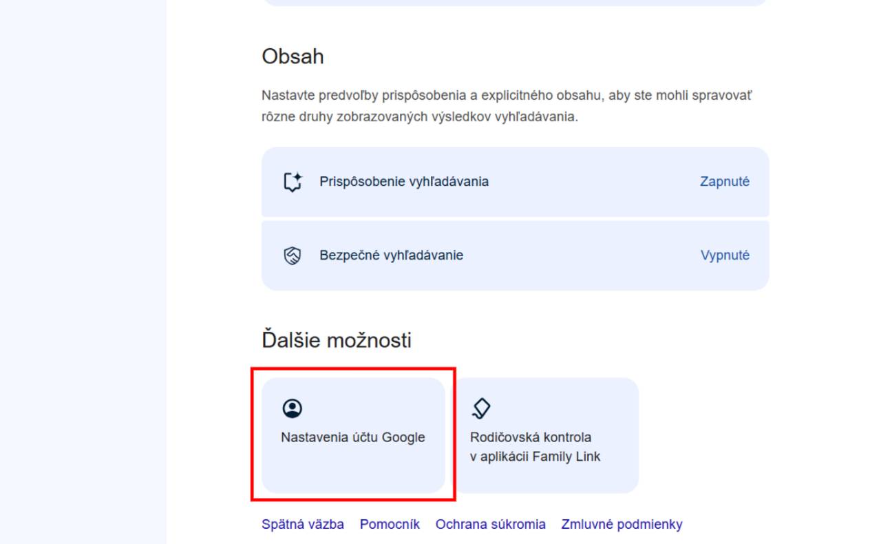 - V spodnej časti obrazovky klikni na Nastavenia účtu Google.