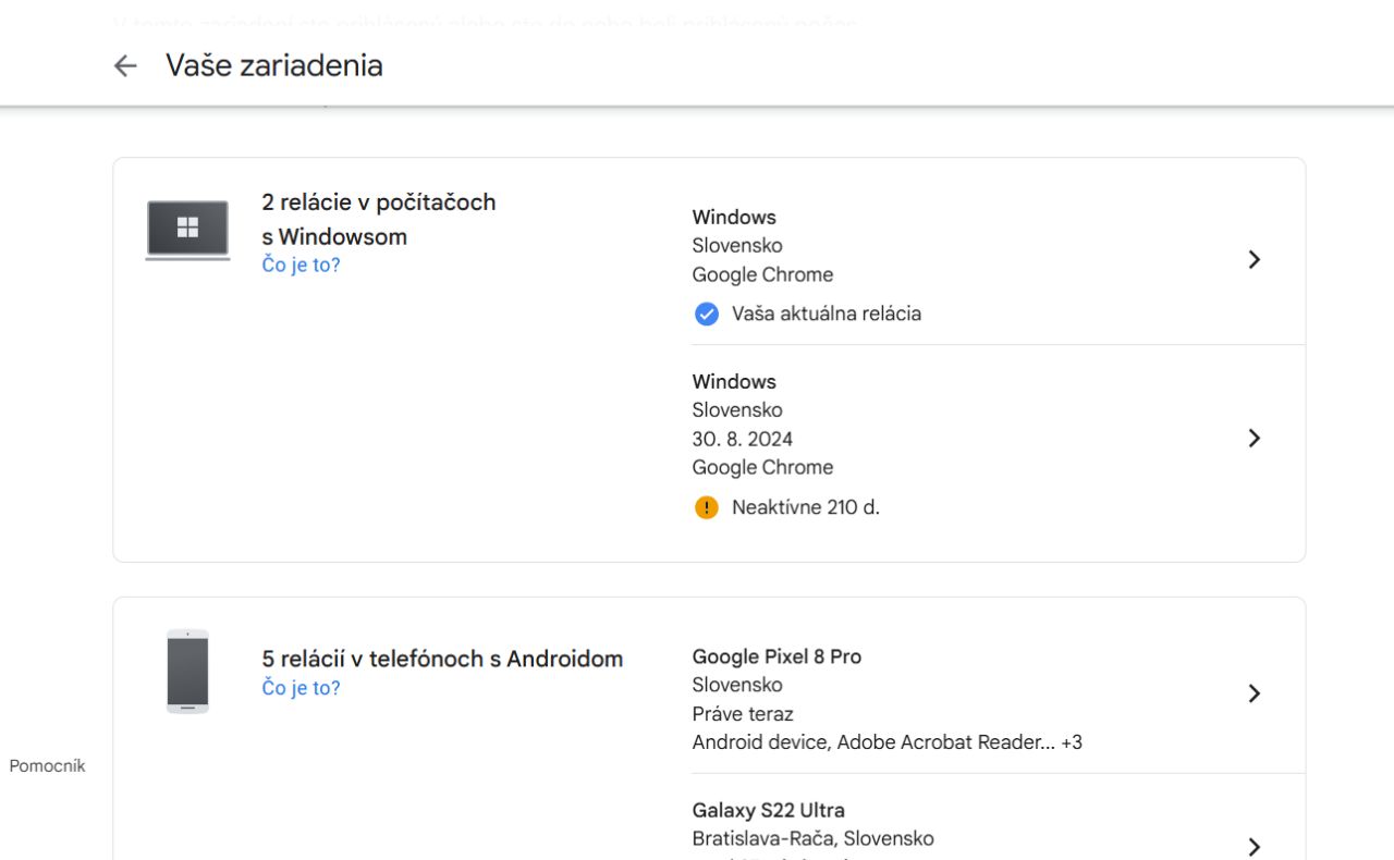 - Následne uvidíš všetky zariadenia, ktoré sú prihlásené k tvojmu účtu vrátane toho, kedy sa naposledy pripojili.