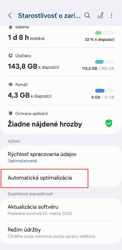 - V ďalšom kroku otvor možnosť Automatická optimalizácia.