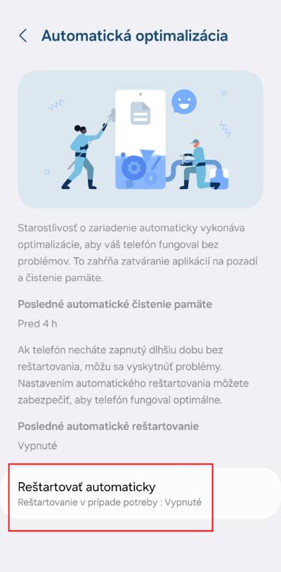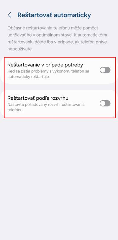 - Následne zvoľ, kedy sa má mobil reštartovať automaticky. Napríklad keď zaznamená problémy alebo v konkrétnom čase.