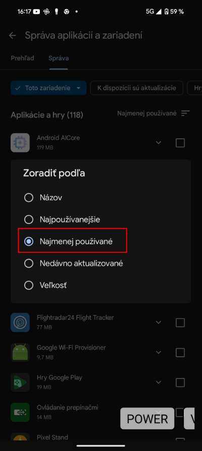 - Potom sa ti zoradia aplikácie od najmenej používaných po najviac používané.