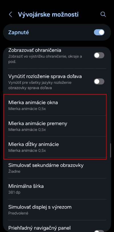 Následne sa ti v nastaveniach objaví nová sekcia „Nastavenia pre vývojárov“ alebo „Režim pre vývojárov“. Názov sa môže mierne líšiť v závislosti od značky telefónu. Nájdeš ju väčšinou na konci menu nastavení, prípadne použi vyhľadávanie. V tejto sekcii si vyhľadaj možnosti animácií a nastav ich napríklad na 0,5× alebo ich úplne vypni. Telefón ti bude následne reagovať o niečo rýchlejšie.