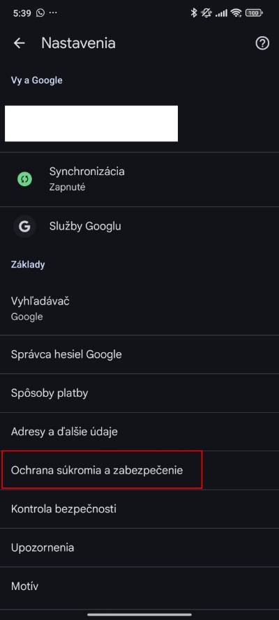 - Zroluj ponuku k možnosti Ochrana súkromia a zabezpečenie. Otvor ju.
