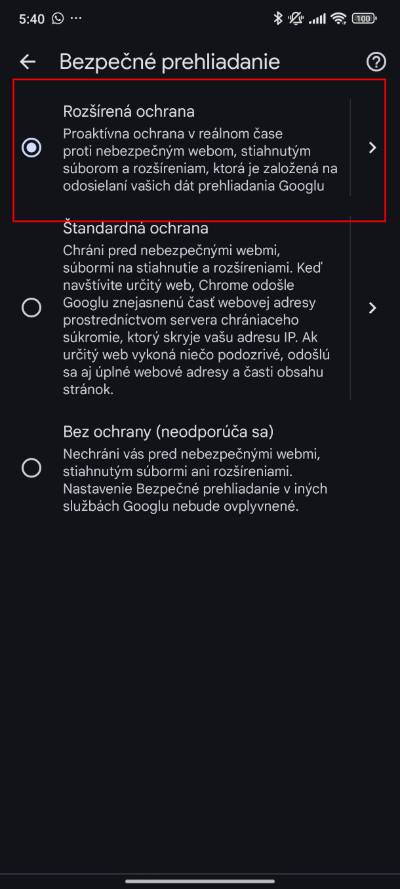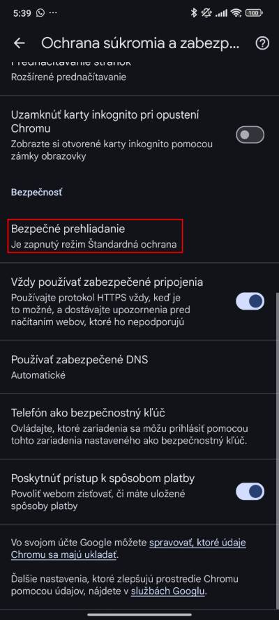 - Klikni teraz na možnosť Bezpečné prehliadanie.