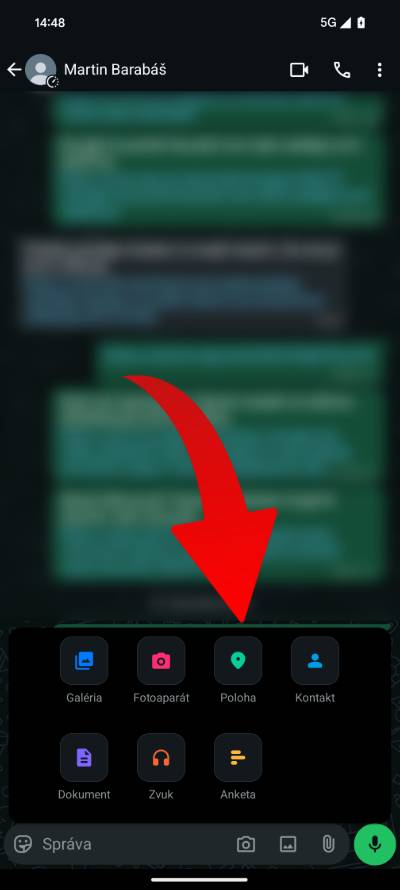 - Teraz otvor chat s kontaktom, s ktorým chceš zdieľať aktuálnu polohu.