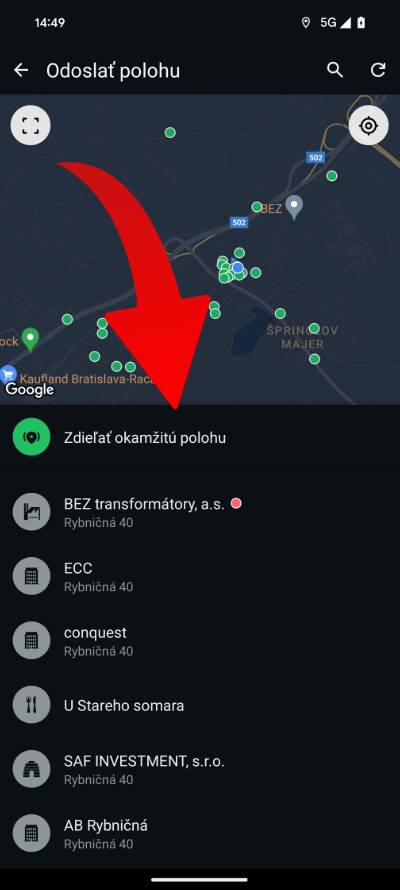 - Teraz klikni na Zdieľať okamžitú polohu.