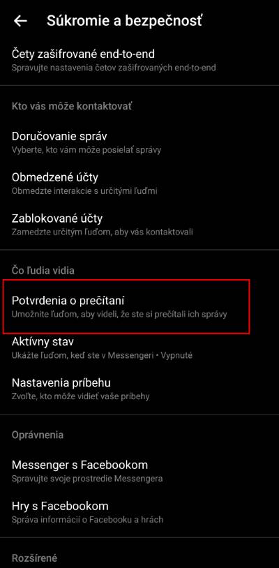 - Teraz sa dostaň k sekcii Čo ľudia vidia. Tu nájdeš možnosť Potvrdenie o prečítaní.