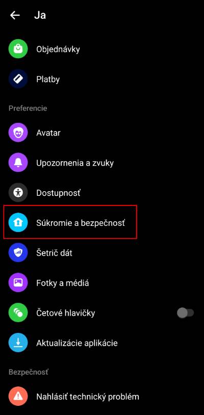 - Zroluj ponuku teraz k možnosti Preferencie a klikni na Súkromie a bezpečnosť.