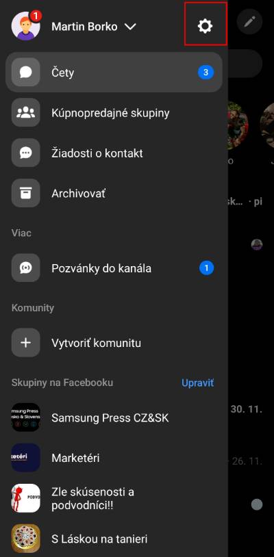 - Teraz klikni na ozubené koliesko (Nastavenia).