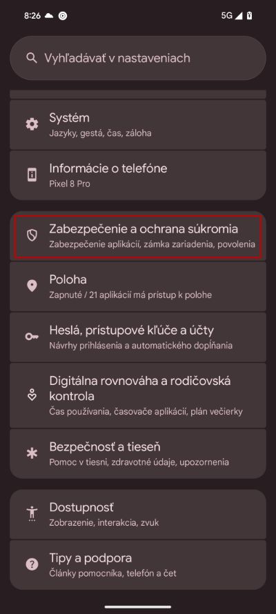 Cesta k týmto nastaveniam môže byť ale rôzna v závislosti výrobcu telefónu. Alternatívne použi našepkávač v nastaveniach.