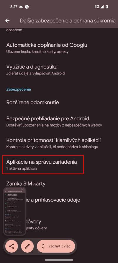 Nastavenia > Zabezpečenie a ochrana súkromia > Ďalšie zabezpečenie a ochrana súkromia > Aplikácie na správu zariadenia. Nižšie sa môžeš pozrieť aj na snímkach obrazovky, ako sa dostaneš k týmto povoleniam.