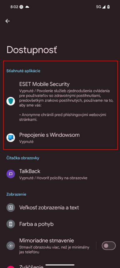 Pozri sa, ktoré aplikácie majú oprávnenie „Dostupnosť“