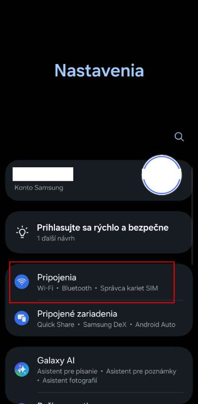 - Otvor Nastavenia telefónu a prejdite do sekcie Pripojenia.