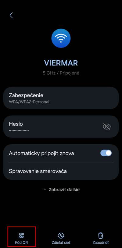 Pozor však, má to aj druhú stránku. QR kód odhaľuje celé heslo, takže si dobre rozmysli, komu ho ukážeš. Rozhodne ho neposielaj hocikomu cez Messenger alebo e-mail, inak riskuješ, že sa k tvojej sieti pripojí ktokoľvek. Rozumný tip je uložiť si QR kód ako obrázok len pre vlastnú potrebu, prípadne si ho vytlačiť a odložiť niekde doma. Keď príde návšteva, stačí ho ukázať a máš pokoj.