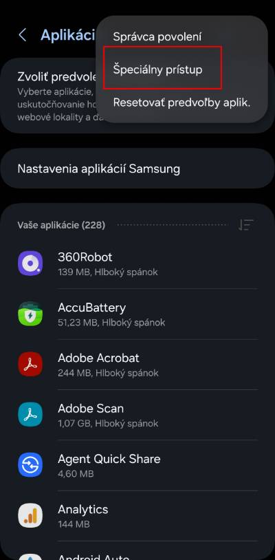 Málokto však vie, že správca povolení vyššie nie je jediný, ktorého v mobile nájdeš. Existuje aj karta so Špeciálnymi povoleniami, kde sa nachádza oprávnenie, ktoré hackeri najčastejšie zneužívajú na získanie tvojich prihlasovacích údajov, napríklad do internetového bankovníctva. Táto karta býva skrytá na dvoch miestach. Napríklad ju môžeš nájsť cez tri bodky v pravom hornom rohu v správcovi aplikácií.