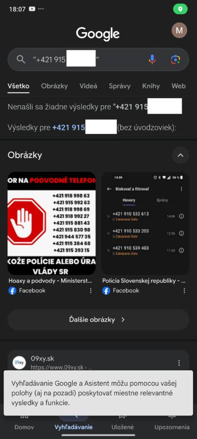 Vo vyhľadávači ešte zostaneme. Možno si to nevedel, ale vyhľadávač Google ponúka viacero takzvaných „operátorov“. Ide o príkazy, cez ktoré môžeš bližšie špecifikovať dotaz, ktorý chceš vyhľadať. V tomto prípade mobilné číslo vyhľadaj takto „0904XXXYYY site:sk“. Pomocou tohto triku vyhľadáš mobilné číslo tak, že vo výsledkoch vyhľadávania uvidíš len slovenské stránky, kde je prítomné.