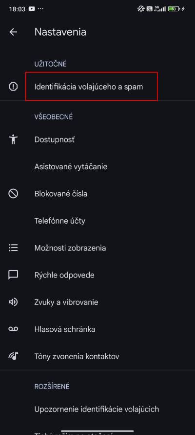 Jednou zo základných funkcií aplikácie Telefón je schopnosť identifikovať meno volajúceho, resp. názov firmy, ak ti telefonuje spoločnosť. Túto funkciu je ale potrebné aktivovať. Dostaneš sa k nej pomocou cesty Telefón – Tri bodky v pravom hornom rohu – Nastavenia – Identifikácia volajúceho a spam. Ak by si potreboval vidieť krok po kroku na snímkach obrazovky, tak ti ich prikladáme nižšie.